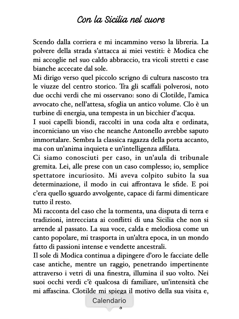 Intanto sogna, scrive, si mette in gioco. Crede nel destino, nei colpi di fulmine, nelle coincidenze. E, quando meno se lo aspetta, qualcosa accade. Un segno arriva. Forse proprio quello che aspettava da sempre.